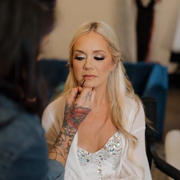 My goal isn’t just beautiful makeup — it’s creating a calm, enjoyable experience so your wedding day feels relaxed and effortless. I work carefully with each person while keeping the timeline on track, making sure everyone feels comfortable, confident, and ready on time. The getting-ready moments should feel joyful, not rushed, and I do my best to help create that atmosphere.